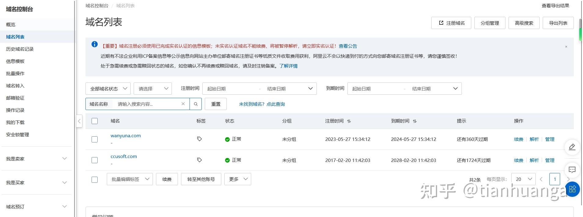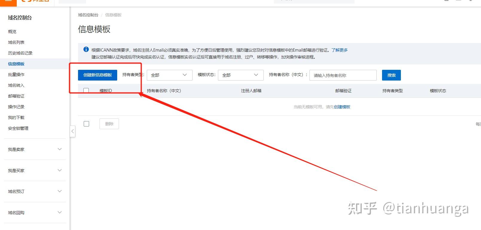 在采購域名前,必須實名一下域名持有者信息,否則是無法注冊域名的。點擊:實名域名模板