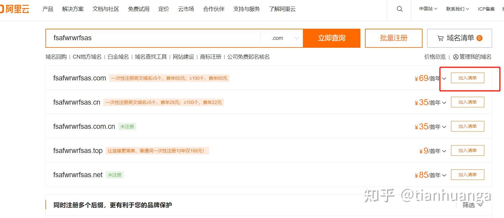 選擇自己想要的域名,然后加入購物車