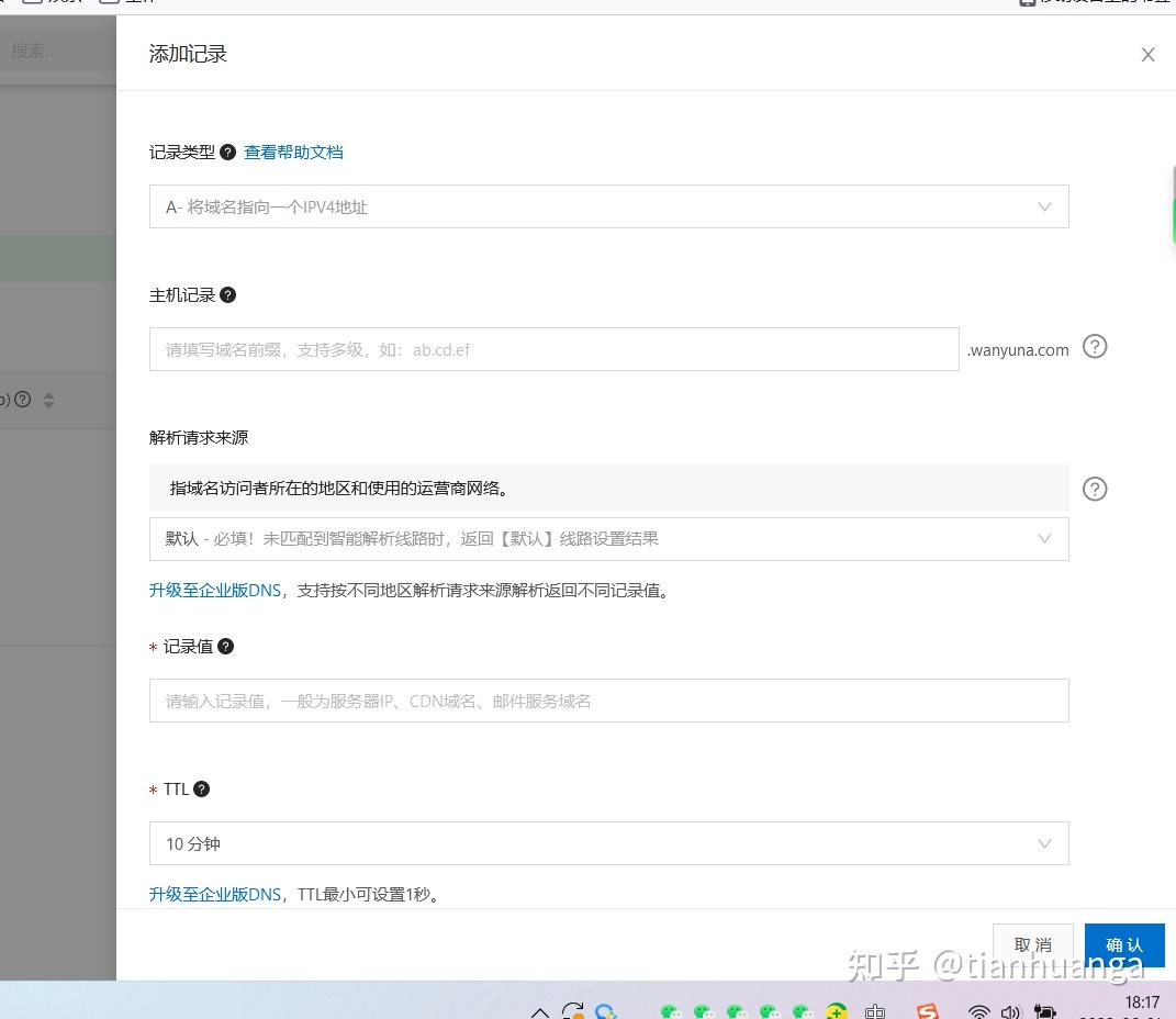 填寫:主機記錄,選擇:記錄類型,填寫:記錄值(這里填寫的服務器IP)